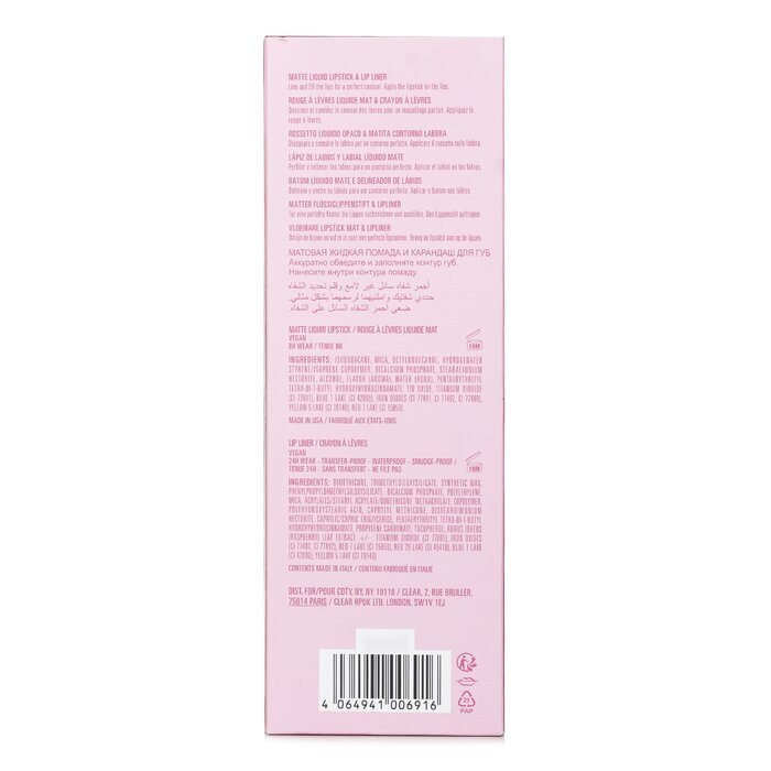 • Two-piece kit: Matte Liquid Lipstick in #103 Better Not Pout (3 ml / 0.1 oz) and Lip Liner in the same shade (1.1 g / 0.039 oz)