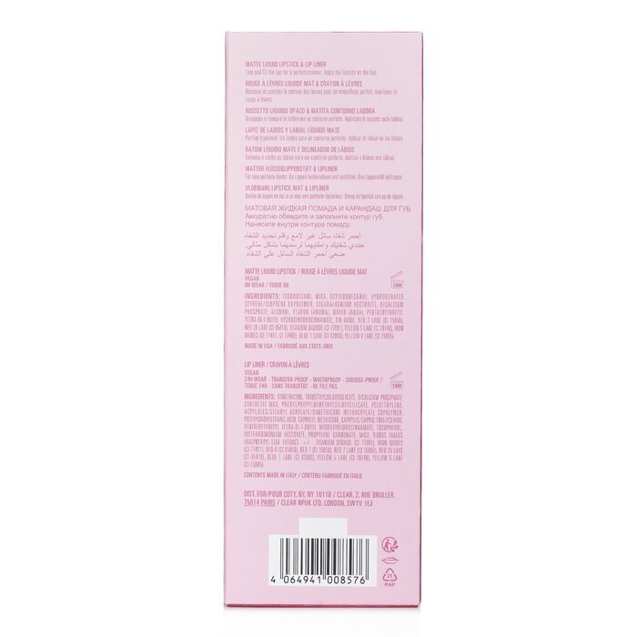 For best results, line lips with the lip liner to define edges and fill in with the matte lipstick for a cohesive, long-lasting matte finish.